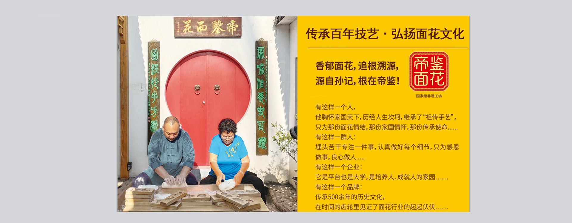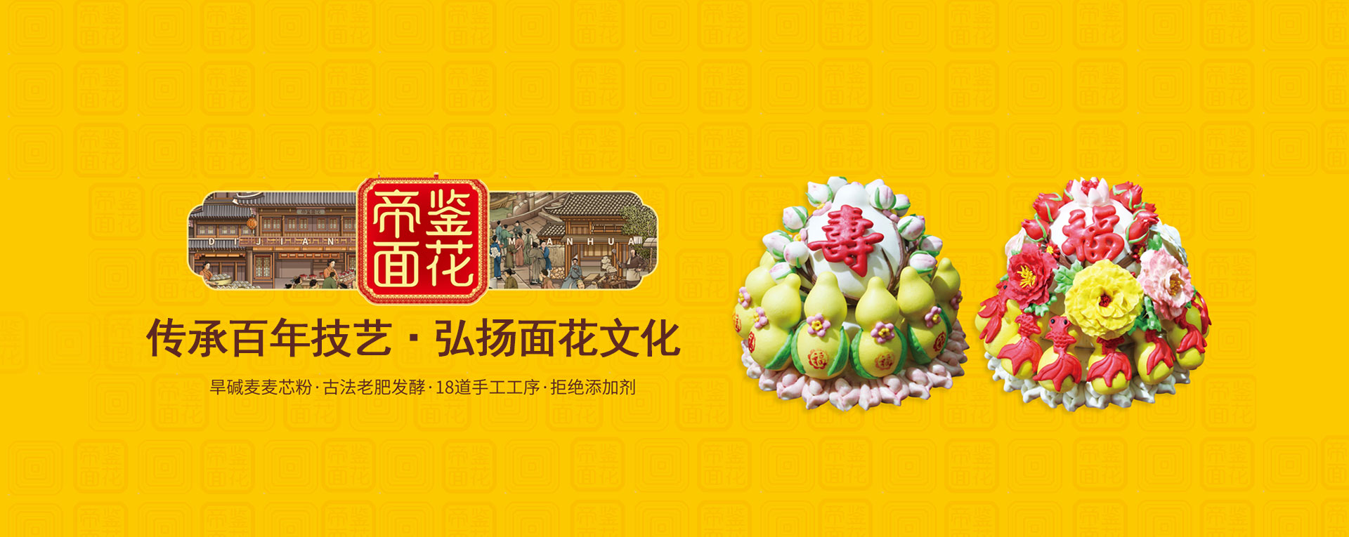 秉持“真”的核心价值观,帝鉴以“守真心 传真味”为企业使命,致力成为“中国面食行业的真味标杆”。帝鉴面花采用“黄骅旱碱麦”磨制的“麦芯粉”,压花讲究技巧,成品出模完整,表面纹路清晰光滑,造型喜庆吉祥、神形兼备,栩栩如生,具有很强的艺术性和观赏性,传递着人与人之间浓浓的思念和祝福。