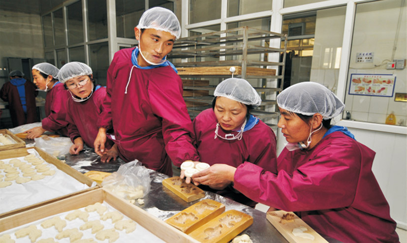 帝鉴公司对面花的质量要求十分严格,质检员王世胜将外观不达标的面花拿出来返工