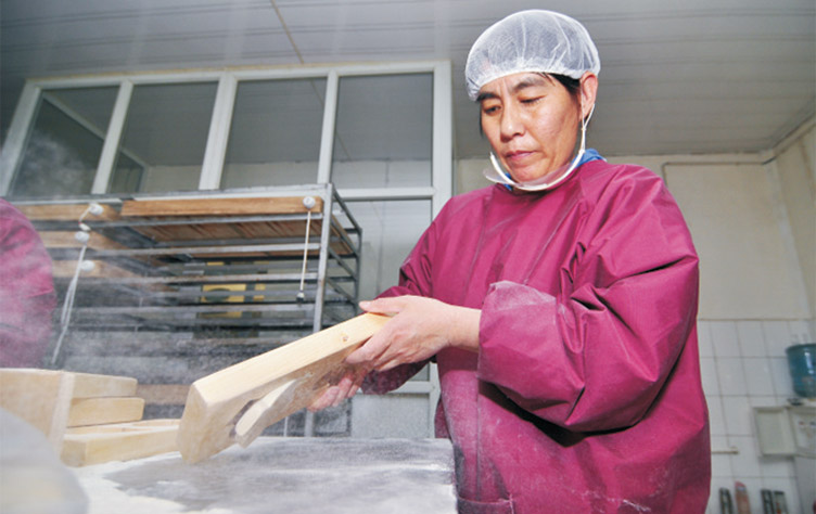 帝鉴公司对面花的质量要求十分严格,质检员王世胜将外观不达标的面花拿出来返工