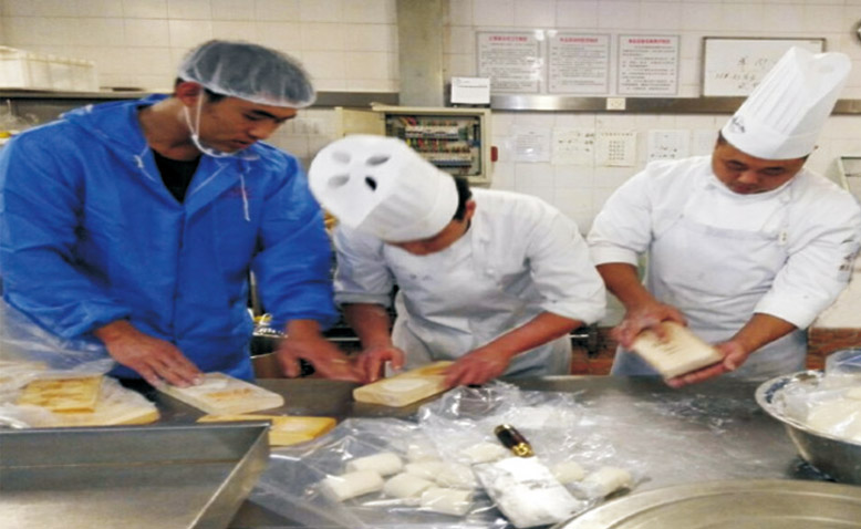 “黄骅面花制作技艺”传承人、帝鉴公司创始人孙建军亲临生成车间指导面花制作工艺。